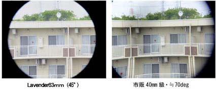 また下列の写真はLavenduraアイピースと市販40mm級アイピースでコリメート撮影した風景写真です。Lavenduraアイピースの像は視野が平坦で明るく倍率の色収差や周辺減光も少ないことが判ります。長焦点アイピースLavenduraシリーズに備わったこの特性は地上風景やディープスカイの観望に新たな感動をもたらしてくれることでしょう。